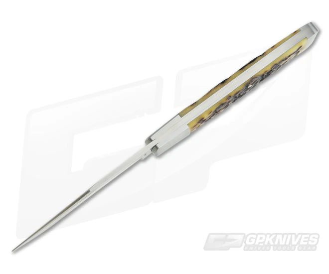 Master knife maker Bill Ruple has been making knives since 1988 and specializes in making high quality slip joint folders. Bill has instructed and inspired a countless number of custom knife makers and continues to deliver exceptionally fine folding knives. Mr. Ruple only makes a few knives a year lending a high collectors value to his pieces. The elegance, simplicity and top level fit and finish has to be seen in person to be truly appreciated. This custom single blade Trapper comes with brushed stainless steel bolsters and liners, Jigged Bone covers and a hand rubbed satin finished CPM-154 blade.