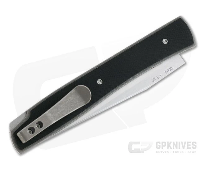 Blade: Long and slender, the clip point blade of the Urban Trapper is made from satin finished VG-10 stainless steel for well-balanced performance. Milled on front of the blade is a large, oval nail nick for traditional two-hand opening. A shallow hollow grind paired with the nearly full length swedge and narrow blade offer excellent slicing, piercing and detail cutting performance. Over three inches of cutting edge in a sub-2 ounce package is tough to beat for EDC.