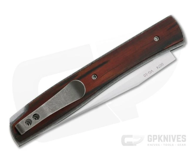 Custom knife maker Brad Zinker is back again with another excellent collaboration with Boker knives. Evolving his popular Urban Trapper design Boker is now offering a production lock back version with the same high performance, Japanese VG-10 stainless steel blade, titanium liners and slim, ultralight and ergonomic design. This version comes with Cocobolo wood handle scales. The modern traditional Urban Trapper back lock makes a great option where two-hand opening is required by law.