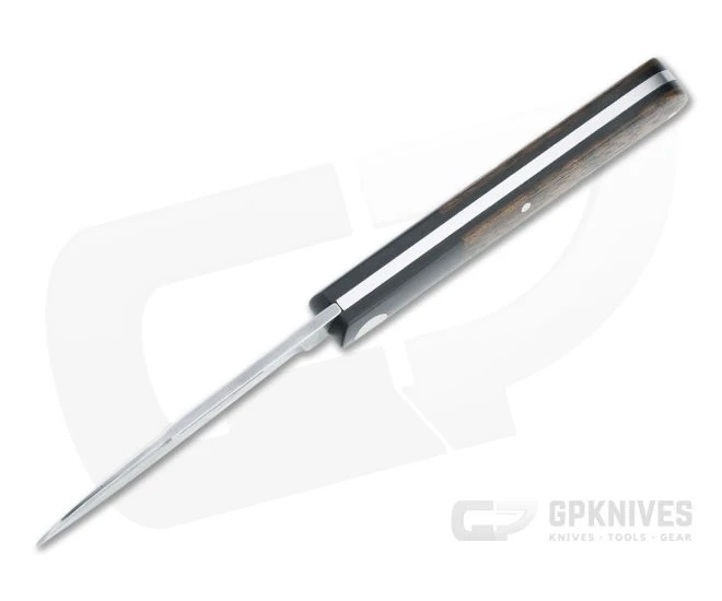 Handle: Black linen Micarta liners with integral bolsters house the blade and back spring in an ultralight yet durable construction. Walnut wood offers a warm feel and handsome look while Micarta delivers the durability and weather resistance of a modern composite. A solid stainless steel back spring offers strong and snappy slip joint operation with solid half stop.