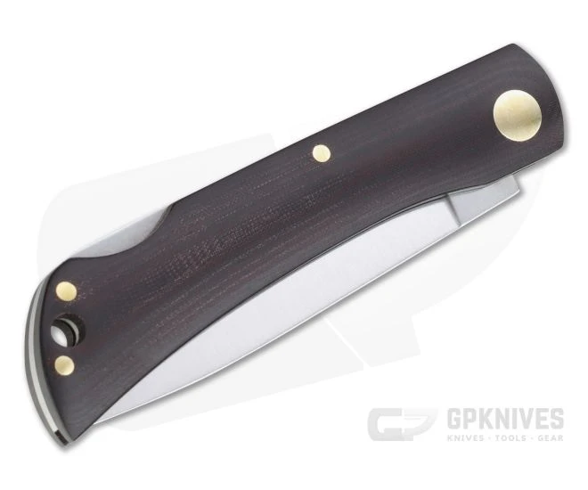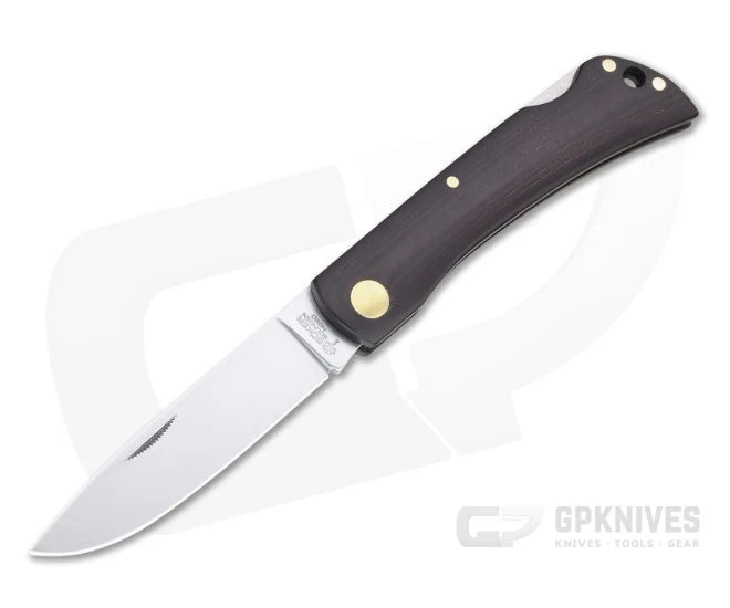 Handle: Decorative brass pins attach the handsome linen Micarta handle scales to the blade and stainless lock bar and back spring. Contoured for comfort, Micarta offers traction and a warm in hand feel with modern durability and weather resistance. The back lock mechanism is time tested and reliable for secure operation. A hole at the pommel allows for lanyard attachment on this clipless modern traditional.