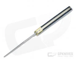 Nichols Stainless Damascus: Stainless Damascus offers the performance of a modern stainless steel while delivering a unique look from the pattern welded layers and acid etched finish. Available in multiple patterns, stainless Damascus gives a knife a striking and singular look. Composed of AEB-L and 304, Nichols Damascus delivers excellent corrosion resistance and toughness with good hardness for edge retention.