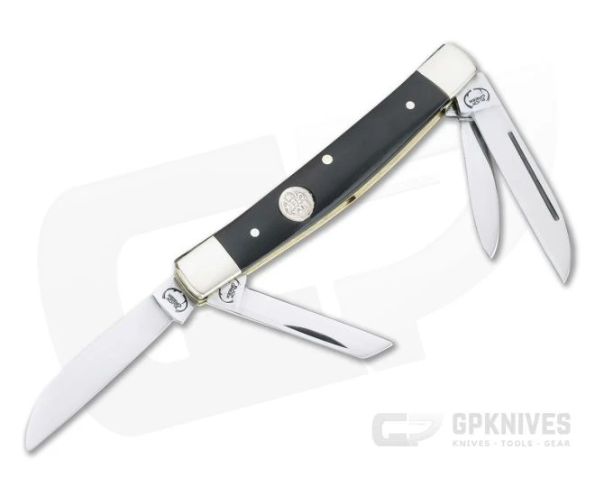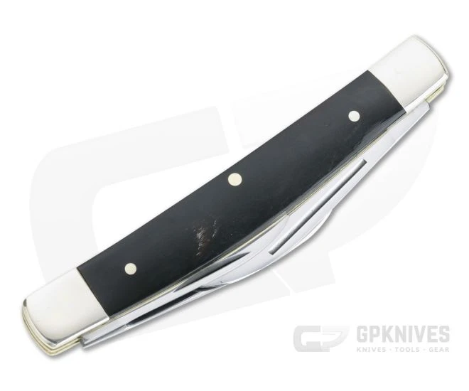 Essentially a Congress pattern, the Little Bear & Bull has a crescent moon shaped handle square bolsters and Wharncliffe main blade. The knife has four blades: dual Wharncliffe main blades paired with a coping and pen blade pair. This version comes with buffalo horn covers and German stainless steel blades.