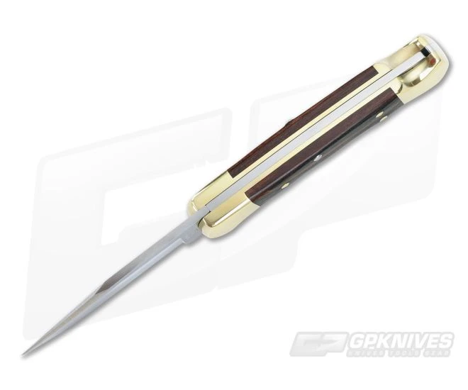 Buck Ranger with finger grooved natural woodgrain handles. Finger grooves allow for comfortable grip. 420HC stainless steel blade with nail nick for easy opening. Brass bolsters and liners. Includes leather belt sheath.