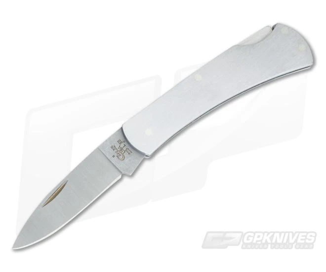 Case Executive lockback with brushed stainless steel construction and a single locking drop point blade. The blade has a nail nick for opening and locks in the open position with ease. A back lock can be maneuvered easily as well for quick closing.