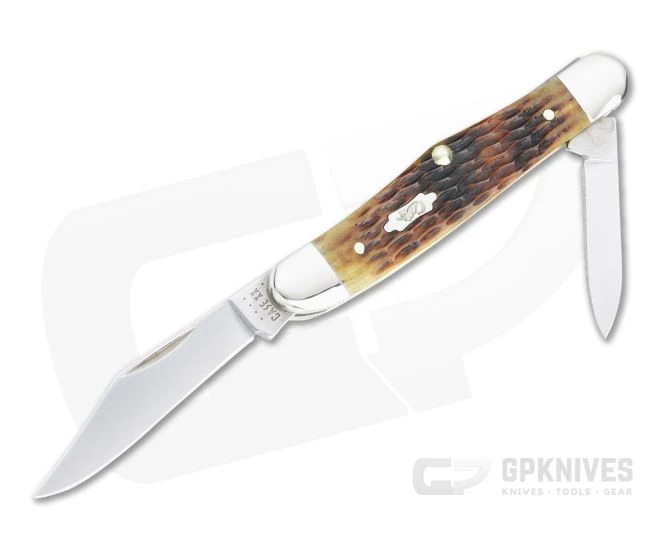 The Half Whittler ’08WH is a two-bladed version of the Whittler ’08 pattern with a clip point master blade on one end and a pen blade on the other. The Whittler pattern has been around for nearly 80 years, and they’ve put a lot of wood chips on the floor. This version comes with Tru-Sharp stainless steel blades and rugged Rogers Corn Cob Jig Antique Bone covers.