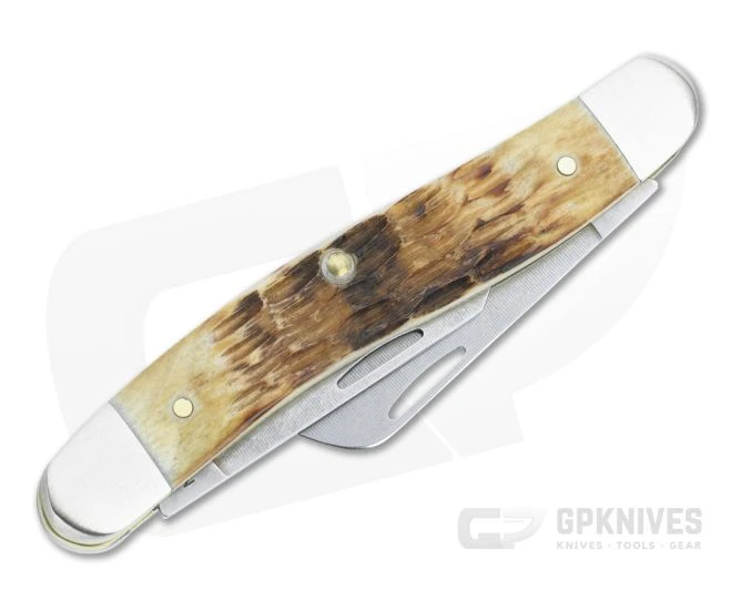 Considered a scaled down version of the Cattleman pattern, the Case Stockman shares several similarities in the design. The Medium Stockman is the second largest of this pattern and comes with a main clip point blade and two auxiliary blades. This premium version comes with stonewashed CPM-S35VN blades, burnt amber bone covers with Crandall jig, and brushed bolsters.