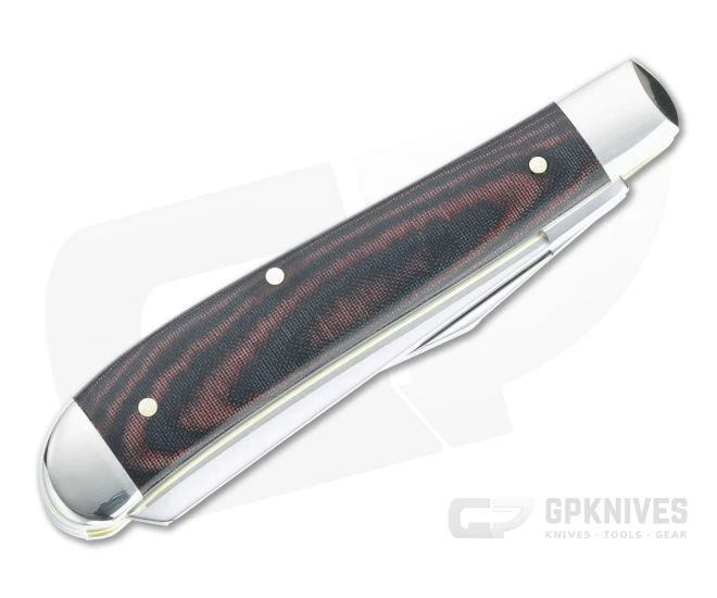Timeless and traditional, the design of this Case Mini Trapper will remind you of simpler times. The classic slip joint design offers two-blade utility with a svelte yet rugged handle. Rugged, handsome and ready for daily use, the Case Mini Trapper is an excellent addition to any Case collection. This version comes with smooth black and red Micarta covers and polished Tru-Sharp stainless steel clip point and Spey blades.