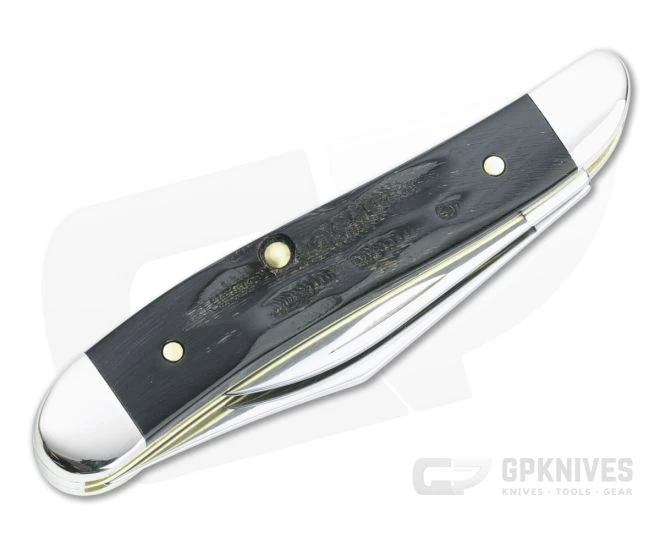 The small, serpentine-shaped jack knife from Case knives known as the Peanut comes equipped with dual blades mounted at the same end of the elegantly curved handle. The size makes it a great choice for dress carry or daily carry in a fifth pocket or coin pocket. This version comes with jigged buffalo horn covers and Tru-Sharp stainless steel blades.