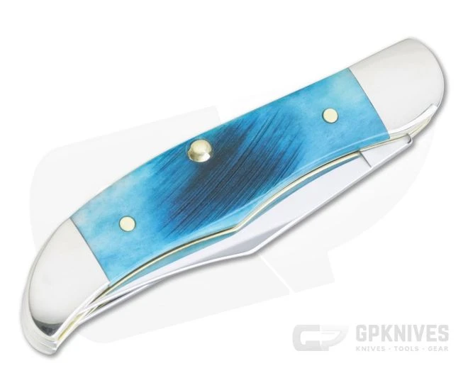 The Pocket Hunter returns from the Case Vault for 2020! Small yet robust for everyday use, the Pocket Hunter is an excellent EDC companion by itself or with a larger knife. Many variations are available but get one now as this pattern will return to the vault at the end of the year! This version comes with rugged and striking Caribbean Blue Sawcut Jig Bone covers and two Tru-Sharp stainless steel blades: one clip point and one skinner.