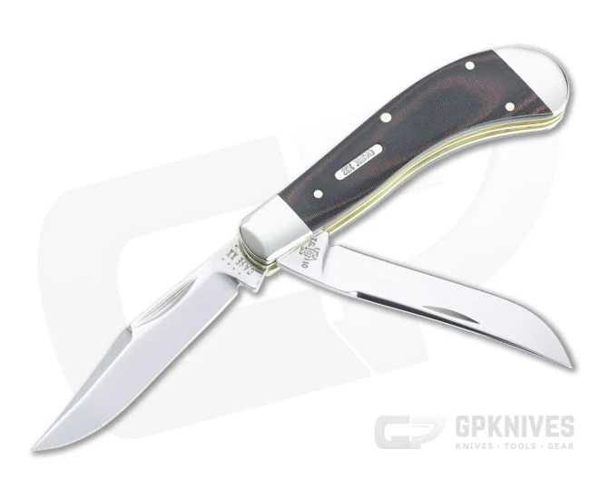 One of the original patterns produced with the establishment of the Case factory in Pennsylvania, the Saddlehorn takes its name from its resemblance to the saddle horn on a riding saddle. Framed between two sets of polished bolsters, you will find durable and stylish black and red Micarta covers for the traditional handle with two flat ground polished stainless steel blades, one clip point and one skinner.