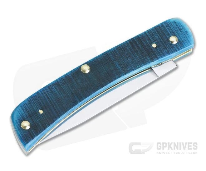The tried and true Case Sod Buster is a classic slip joint pattern built robust for functional utility. This version is the smaller of the two Sod Busters, the Jr., and comes with rugged and striking Caribbean Blue Sawcut Jig Bone covers and a Tru-Sharp stainless steel blade.