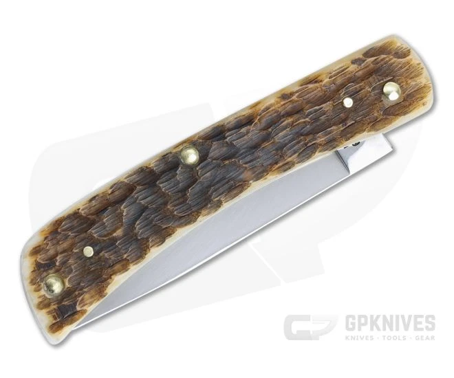 The tried and true Case Sod Buster is a classic slip joint pattern built robust for functional utility. This version is the smaller of the two Sod Busters, the Jr. and comes with rugged and handsome Peach Seed Jigged Amber Bone covers and a Chrome Vanadium carbon steel blade.
