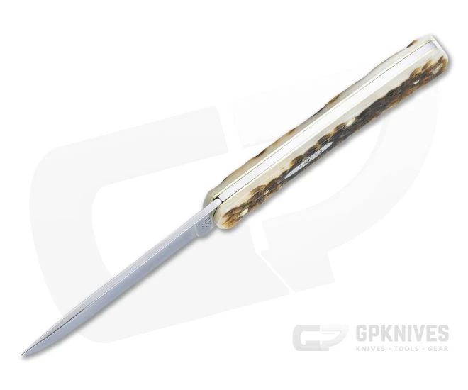 Blade: The single skinner blade has a subtle clip and full flat grind and is made from Chrome Vanadium carbon steel with a mirror polish finish. The full flat grind provides a good combination of durability and cutting performance. This model has a strong back spring with smooth slip joint operation.