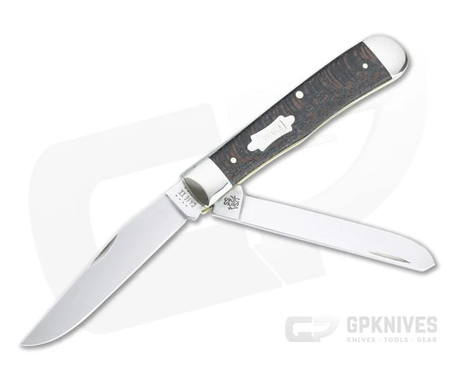 A favorite among Case collectors, the Trapper has been in production since the 1920s and is still a popular and utilitarian jack knife. Originally designed for trapping and skinning tasks, this lightweight is a great all around user thanks to the versatile design. The classic slip joint design offers two large steel blades at the primary end of the comfortable bolstered handle. Great for daily use or an addition to your Case collection. This version comes with Tru-Sharp stainless steel blades, smooth black Sycamore wood covers, polished nickel silver bolsters and matching bow tie shield.