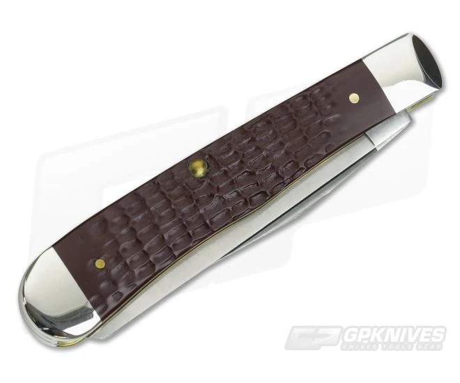 The Case Trapper with brown synthetic handle and two tru-sharp stainless steel blades is a part of the Case Working Knives collection. Appropriately so, as this knife is ready to tackle everyday tasks no matter how small or large. The Trapper pattern has two satin finished tru-sharp stainless steel blades, a clip and spey blade. The blades are housed between brass liners with impact resistant brown synthetic handles pinned to the liners. On each side of the handle, nickel silver bolsters provide a classic look while the front side of the handle has been accented with an oval Case shield. Brand new direct from Case Knives.