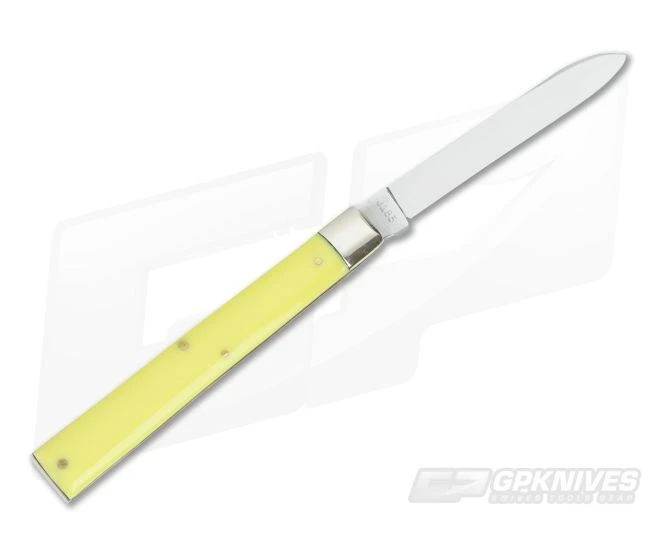 Case XX U.S.A. 7 Dot (1973) Yellow Composition Doctor Knife pattern in mint condition. Featuring a mirror polished carbon steel spear point blade. Blade has good snap and is perfectly centered. The front of the master blade stamped Case XX USA 7 dot stamp. Back of master blade bears the pattern number 3185. The yellow composition has no cracks or chips and no obvious sign of shrinkage. Has not been carried or sharpened and would be a very nice addition to any collection. More images are available upon request.