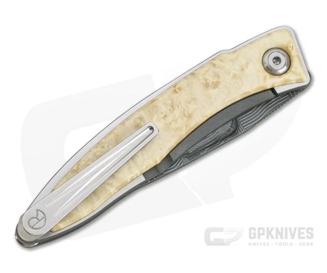 The Chris Reeve Mnandi is the benchmark of high-end production gentleman’s knives. Precision fit and finish along with top-of-the-line materials make this compact folder an ideal gentleman’s carry knife. This version comes with a gorgeous Devin Thomas Basketweave Stainless Damascus plain edge blade and Titanium handles with Box Elder wood inlays.