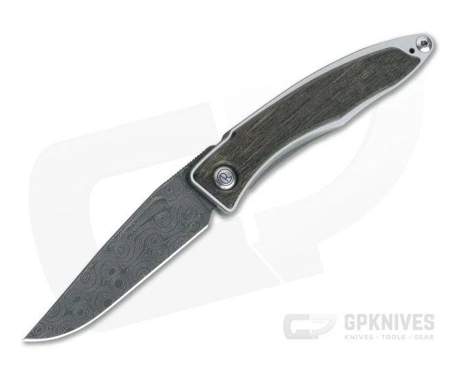 The Chris Reeve Mnandi is the benchmark of high-end production gentleman’s knives. Precision fit and finish along with top-of-the-line materials make this compact folder an ideal dress or gentleman’s carry knife. This version comes with a Nichols Stainless Raindrop Damascus steel blade and titanium handles with Bog Oak inlays.
