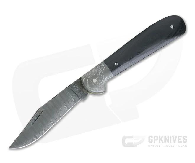 The Chuck Hawes Custom Copperhead is a classic slip joint design made in the traditional fashion. Rugged Double Black Canvas Micarta handle scales are flush fit to Damascus bolsters over stainless steel liners. The handles house a razor sharp, hand forged Ladder pattern Damascus blade and file-worked Damascus back spring.