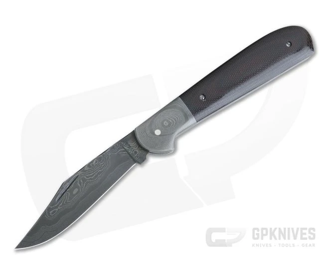 Blade: Hawes hand forged Damascus combines 160 layers of 1095 and L6 high carbon steels creating a unique Burl pattern. The Copperhead-style clip point blade is opened with single nail nick and comes with a razor sharp convex grind. File work along the spine up to the clip adds a custom feel. The blade opens with a pronounced half stop with strong Damascus back spring construction.