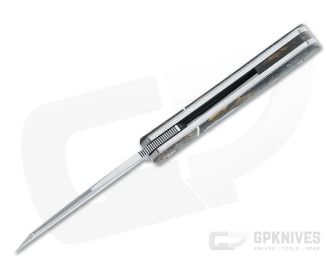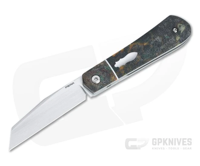 Enrique Pena is known for his unmatched fit, finish and function and iconic style that blends traditional patterns with modern construction. This Pena Custom Front Flipper starts with his hand rubbed satin finished CPM-154 blade, razor sharp, perfectly centered and super smooth in operation. The handle recalls a classic slip joint pattern made with a modern titanium liner lock construction. This piece is a Pena Raptor pattern (swayback Apache) front flipper with a modified Wharncliffe blade and rag Micarta covers and bolsters.