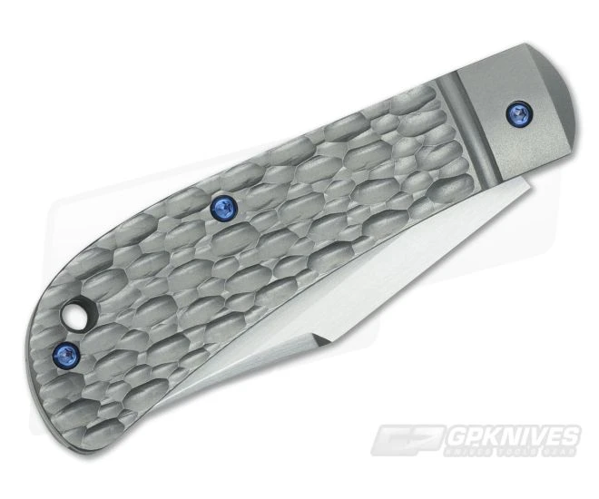 Handle: In keeping with the traditional design the titanium handle is milled with a faux bolster and an organic jigged pattern that feels great in the hand. Assembly is achieved with blue anodized titanium hardware that offers a nice contrast with the blasted finish on the handle. Simple, functional and beautiful, the Peña Lanny’s Clip Point is a sure winner.