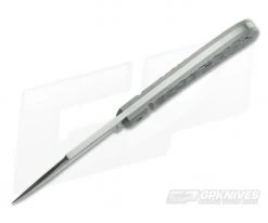 Blade: Made from premium CPM154 stainless steel the blade has a fine, hand rubbed satin finish and has a razor edge. As the name implies it is the classic “Lanny’s Clip Point” profile with a sleek swedge and subtle recurve. While utilitarian in design it is beautiful in its simplicity. The slip joint operation has a solid half stop and excellent walk and talk. A robust nail nick provides a solid opening platform.