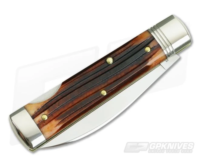 The Handle: It doesn’t get more Wall Street than gorgeous Burnt Orange Springfield Bone. Each slab is grooved, contoured and finished to fit just right between the two bolsters. They are pinned to brass liners and adorned with an Acorn shield. Nickel silver was chosen for the bolsters and shield. Both were given a handsome high polished finish which is just perfect for this #99.