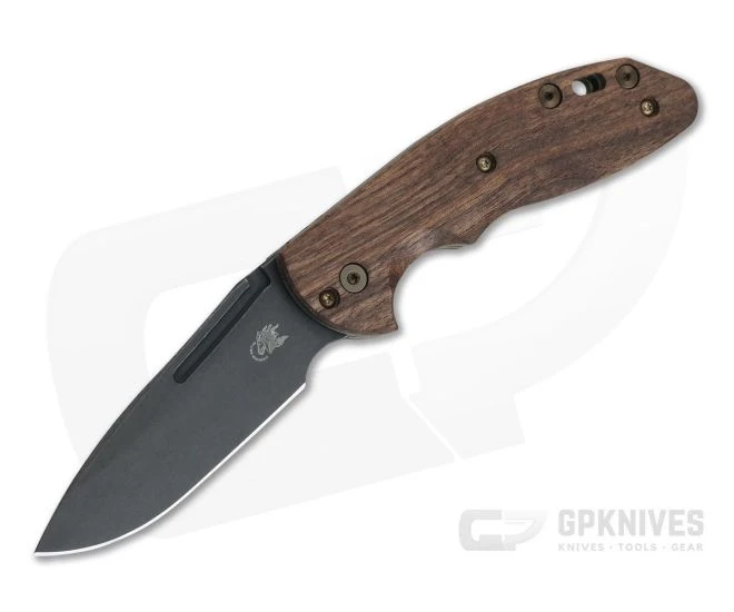 Handle: Full titanium liners have a matching Battle Green Finish (anodized green Working Finish) that is rugged with a classic visual appeal paired with the handsome Smooth Walnut scales. Made from stainless steel, the back spring is working finished and chamfered and offers a solid slip joint operation as well as protecting the blade when closed. Bronze anodized titanium hardware rounds out the construction.