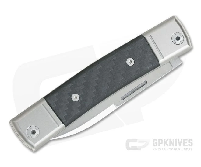 Handle: Crowned titanium liners support beautiful handles with scales of Carbon Fiber framed by grooved titanium bolsters at both ends. The back-spring is crowned along with the chamfered scales and bolsters making this knife very comfortable in the hand. The moderate back spring tension delivers smooth pull with snappy half and full stops for secure use.