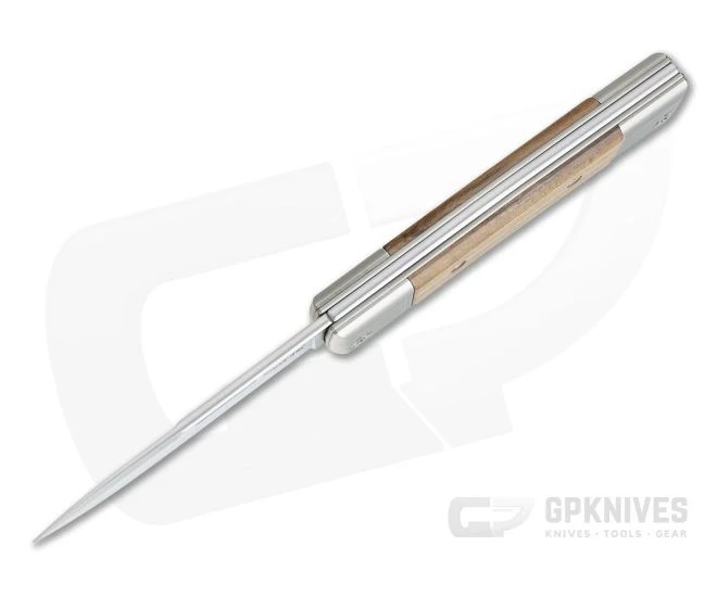Handle: Crowned titanium liners support beautiful handles with scales of Santos Wood framed by grooved titanium bolsters at both ends. The back-spring is crowned along with the chamfered scales and bolsters making this knife very comfortable in the hand. The moderate back spring tension delivers smooth pull with snappy half and full stops for secure use.
