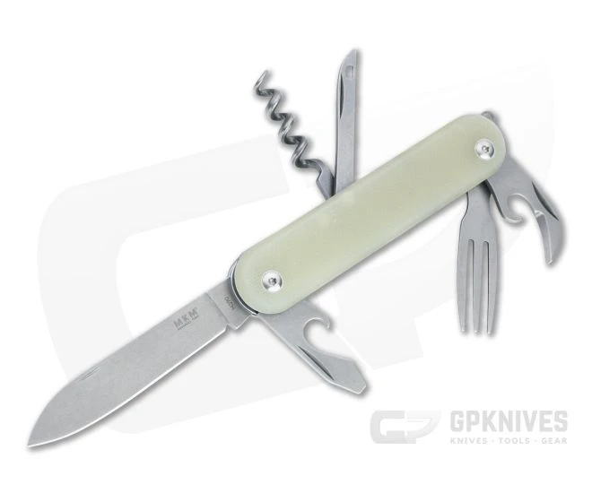 MKM (Maniago Knife Makers) reinterpret the classic Swiss Army Knife multi-tool with modern construction and materials in the Malga 6. With six robust stainless steel tools in addition to the classic spear point blade, the Malga 6 offers classic form with modern function. This version comes with natural translucent “jade” green G10 scales, stainless steel liners and a stonewashed M390 blade.