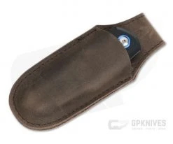 This traditionally inspired knife has no pocket clip. Includes leather sheath with magnetic loop for belt or pocket carry.