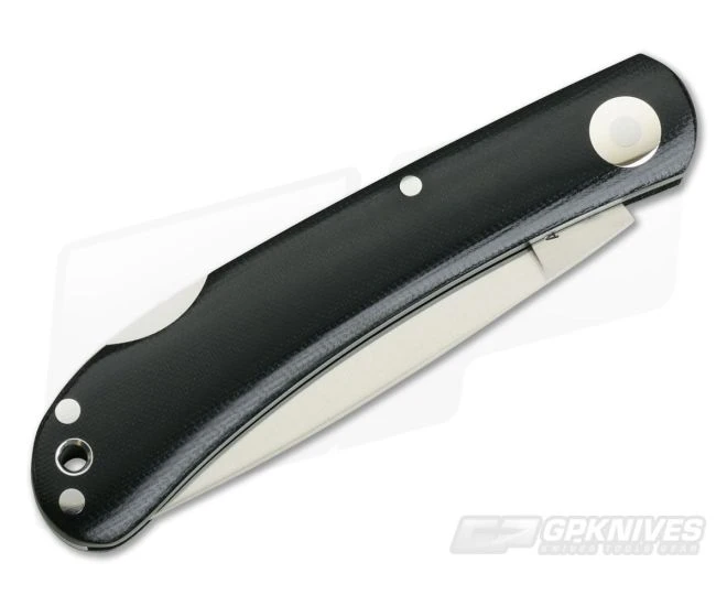 Handle: The Blakiston’s Fish Owl is made with a simple, traditional construction with handsome, polished Black Linen Micarta scales and back spring all held together with steel pins. The simple back lock construction is seamless and smooth in operation for reliable lockup and secure use. The scales are solid Micarta and have no steel liners or inserts for exceptionally light, 1.10 oz. weight. A tube in provided for lanyard attachment.
