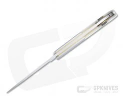 Whether it is your dress carry knife or a collector’s piece, the Moki Glory is a stunning Japanese lock back folding knife. A smaller cousin to the classic Pliant, this slim folder has brass liners and long stainless steel bolsters for good heft in the hand. This version has a polished blade and mother-of-pearl covers with ‘arrow’ abalone inlays.