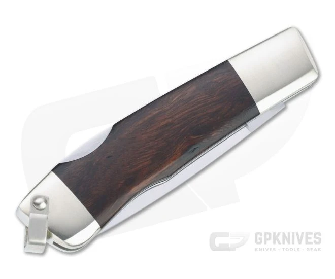 Handle: Brushed stainless-steel liners house the blade and back spring and support nickel silver bolsters framing ironwood scales. A Moki shield inlay adorns the front, while a bail at the pommel allows for lanyard attachment. The back lock is solid, smooth, and reliable in operation for secure use.