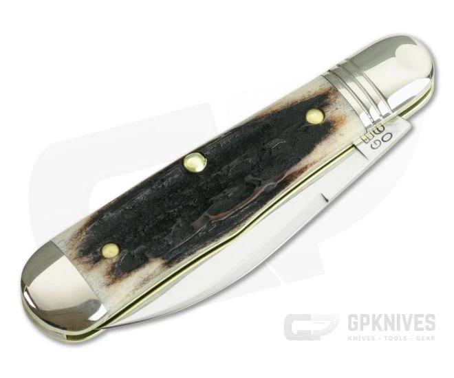 Handle: Construction of this wee lad is reminiscent of an old glass soda bottle with backspring, brass liners and pins. Rugged Sambar Stag offers a classic organic look and feel with dual bolsters: the primary is grooved and pinched with plain bolsters at the pommel.