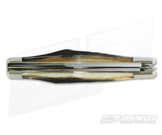 The #44 Buffalo Jack, or Gunstock, from Great Eastern Cutlery is an exercise in class, precision and compact utility. Its style says true gentleman with its clean lines and smooth edges while the perfectly placed blades are ready for use. It is a great all around size for every day. This one is outfitted with unique, Sambar Stag covers framed in nickel silver bolsters.