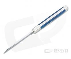 Handle: Fit perfectly between polished and grooved nickel silver bolsters are smooth blue camel bone covers delivering timeless style and classy feel. Construction is classic brass liner and pin with a strong stainless steel back spring for secure slip joint operation. Each GEC knife ships rolled in wax paper in a sturdy tube with company information on the front.