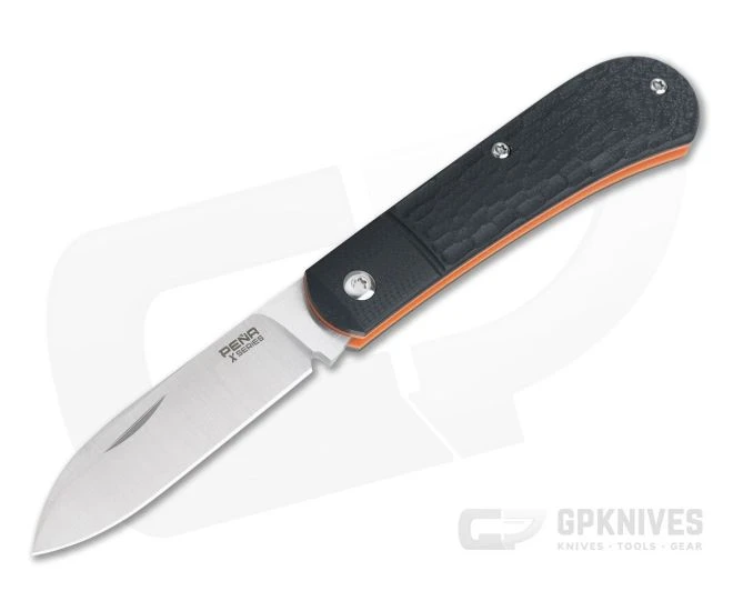 A custom design based on the classic Zulu slipjoint pattern, the Pena X-Series Spear Point Slipjoint is a production version of his custom traditional design. Made with precision by Reate Knives, the Spear Point Slipjoint has excellent walk and talk with a solid half stop with a flush fit in all positions. This version comes with a satin finished M390 blade and jigged black G10 scales over contrasting orange liners.