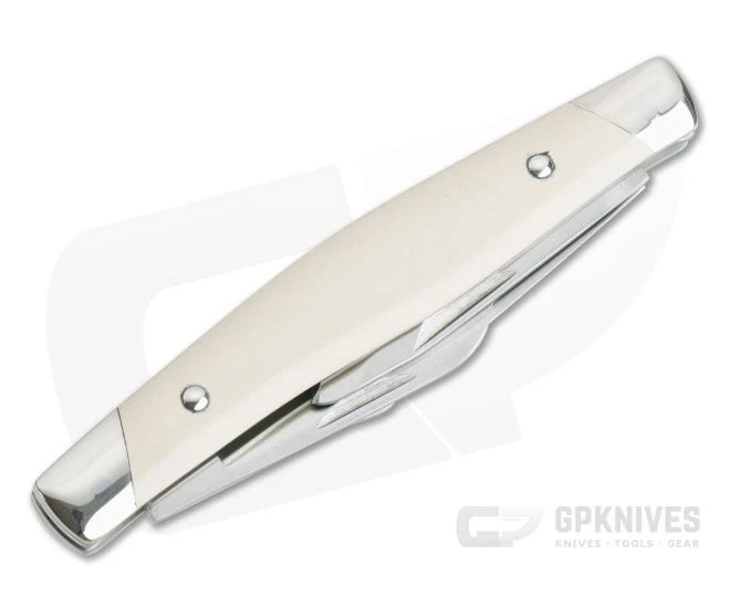 Handle: Ivory Paper Micarta handles scales are fit to nickel silver bolsters all supported by thick liners that make the foundation of the handle. The display side of the handle sports the infamous “Bullet” shield in nickel silver while the reverse side is unadorned. Smooth and robust, the slip joint mechanism provides smooth, secure operation without the need for a lock. Each piece comes with a storage box and certificate of authenticity.