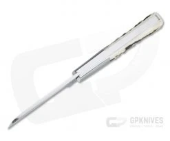 Blade: The Sheepsfoot blade is finished in an elegant hand rubbed satin and marked “T.A. Davison USA” on the front tang. CPM154 finishes beautifully and offers easy maintenance and excellent performance with the shallow, hollow grind provided. The blade opens via a traditional nail nick and a subtle swedge at the tip offers a fine, finishing touch to this beautiful custom piece.
