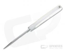Handle: Handsome and stylish Smooth White Bone covers are precision fit to the stainless steel liners and bolsters. Bolsters and liners are mirror polished with file work on the inside of the back spring for a truly custom feel. Stainless pins are used to secure the covers and the display side has a stainless ‘Keyhole’ shield for a timeless feel. The back spring is smooth and solid with half-stop action and sits flush in all three positions.