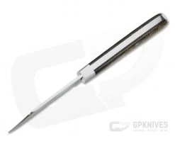 Handle: Vintage Rag Micarta covers are fit to polished stainless steel bolsters, all precision fit to the stainless steel liners. Smooth polished liners and file work on the inside of the back spring offer a truly custom feel. Stainless pins are used to secure the covers and the display side has a stainless shield for a timeless feel. The back spring is smooth and solid with half-stop action and sits flush in all three positions.