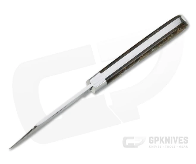 Todd Davison provides custom, traditional slip joint pocket knives that are truly handmade and one of a kind. Having produced over 1600 slip joint knives, Davison utilizes premium materials and offers exceptional quality and attention to detail in a timeless, traditional design. #1984 comes with hand rubbed satin, CTS-XHP clip point blade, stainless liners, bolsters and shield and Vintage Rag Micarta covers.