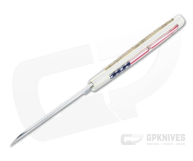 From Great Eastern Cutlery, the Tidioute #49 Freedom is a classic single blade jack knife with brass liner and pin construction, polished bolsters and patriotic American Flag graphic acrylic covers. The blade is satin finished 1095 carbon steel in a Sheepsfoot profile.