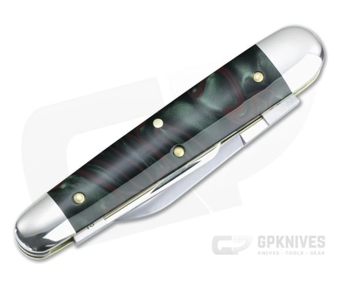 The #59 Shaffer Farm Whittler is a classic split back spring pattern with a stout spear point blade paired with pen and coping blades to complete the trio. It retains the classic look and feel with premium fit and finish that Great Eastern Cutlery represents. This Tidioute Cutlery #59 comes with satin carbon steel blades and Hummingbird acrylic covers.