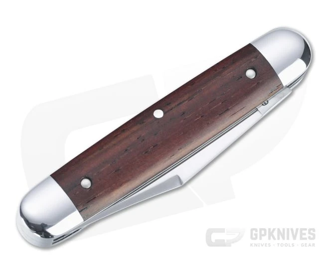 Handle: Fit perfectly between polished steel bolsters are Cocobolo wood covers, delivering a full-size handle with a subtle taper toward each end. Construction is all steel liner and pin with strong stainless steel back springs for secure slip joint operation. Each GEC knife ships rolled in wax paper in a sturdy tube with company information on the front.