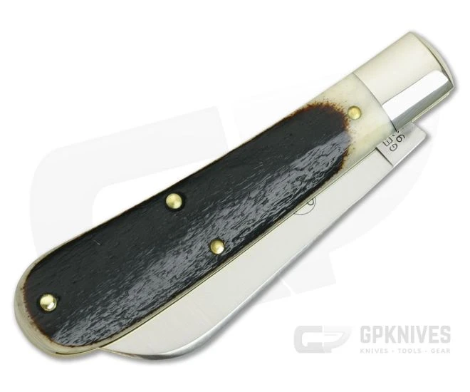 Blade: This new style from GEC blends the classic lines of the Sheepsfoot and Wharncliffe for powerful cutting potential. It is satin finished with proper nail nick pull and slight upper swedge with that just-right half stop action. The high carbon 1095 blade steel is tough and easy to sharpen to a razor like edge but requires care to prevent corrosion and will naturally patina over time.